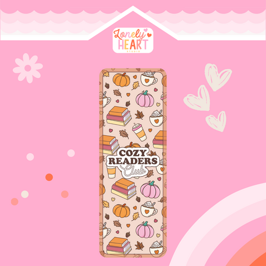 ☕ Cozy Readers Club Bookmark – Pumpkins, Books & Coffee 🎃📚✨