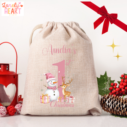 🎄 Personalised 1st Christmas Santa Sack – Baby’s First Christmas Gift Bag - Medium or Large