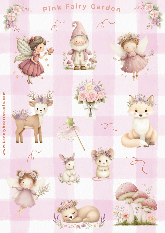 Pink Fairy Garden Whimsical Sticker Sheet A6