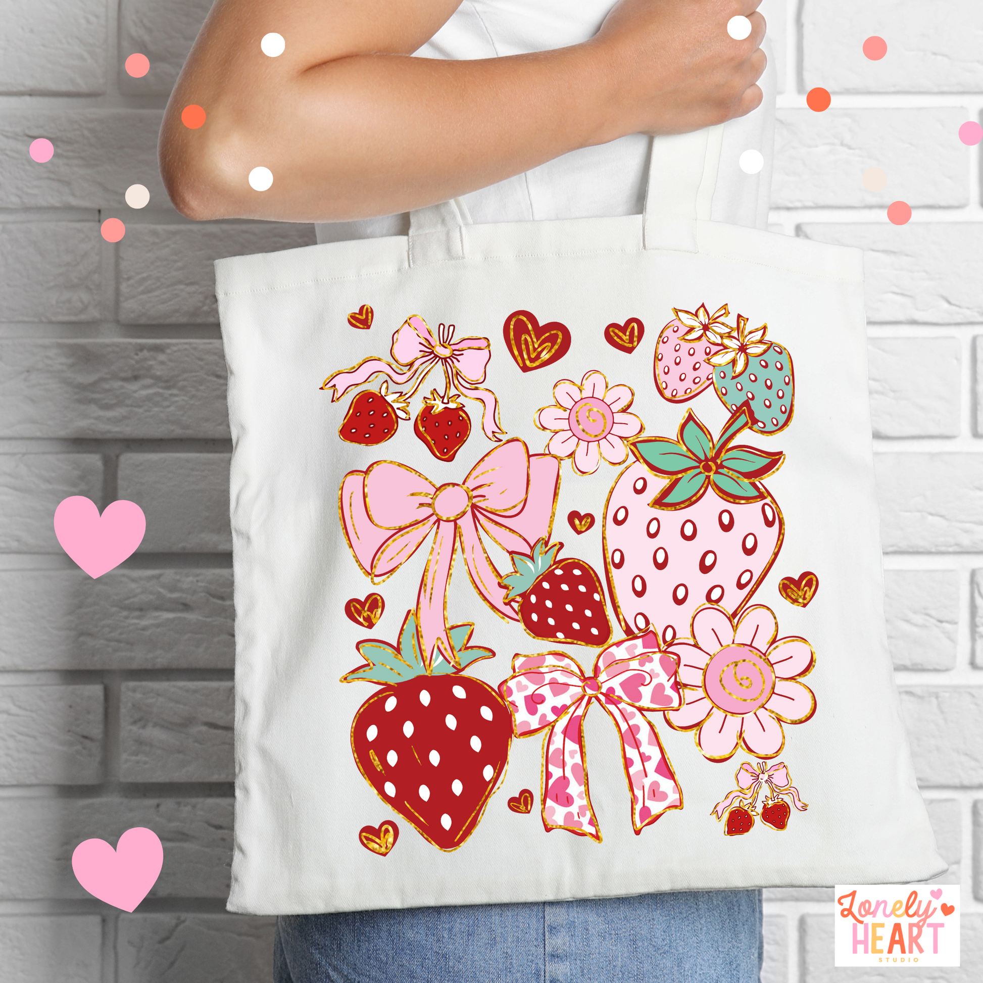 * Strawberries & Bows Girly Tote bag *